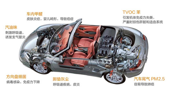 在美國,車內環境污染已被列為“人類健康的十大危害”之一,車內有害物含量是家居和辦公室中的5~10倍。我國的檢測數據同樣觸目驚心。中國室內裝飾協會室內空氣監測中心的一項檢測數據表明:90%以上的轎車內,苯、二甲苯、甲醛等有毒有害氣體嚴重超過國家室內空氣質量標準,最高者竟超標10倍以上。而且不論高檔車還是中低檔車,都不同程度地存在車內污染問題。