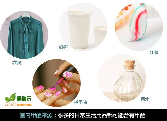 各種人造板材(刨花板、纖維板、膠合板等)中由于使用了粘合劑,因而可含有甲醛。新式家具的制作,墻面、地面的裝飾鋪設,都要使用粘合劑。凡是大量使用粘合劑的地方,總會有甲醛釋放。此外,某些化纖地毯、油漆涂料也含有一定量的甲醛。甲醛還可來自化妝品。 化妝品、清潔劑、殺蟲劑、消毒劑、防腐劑、印刷油墨、紙張、紡織纖維等多種化工輕工產品。